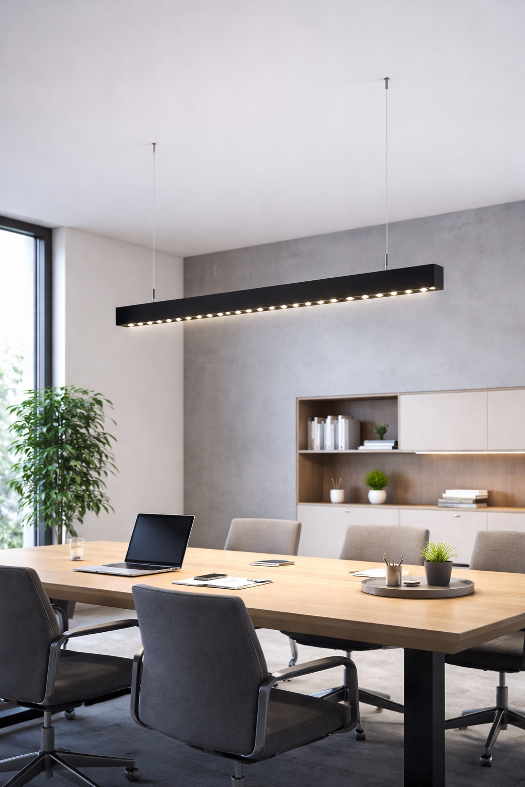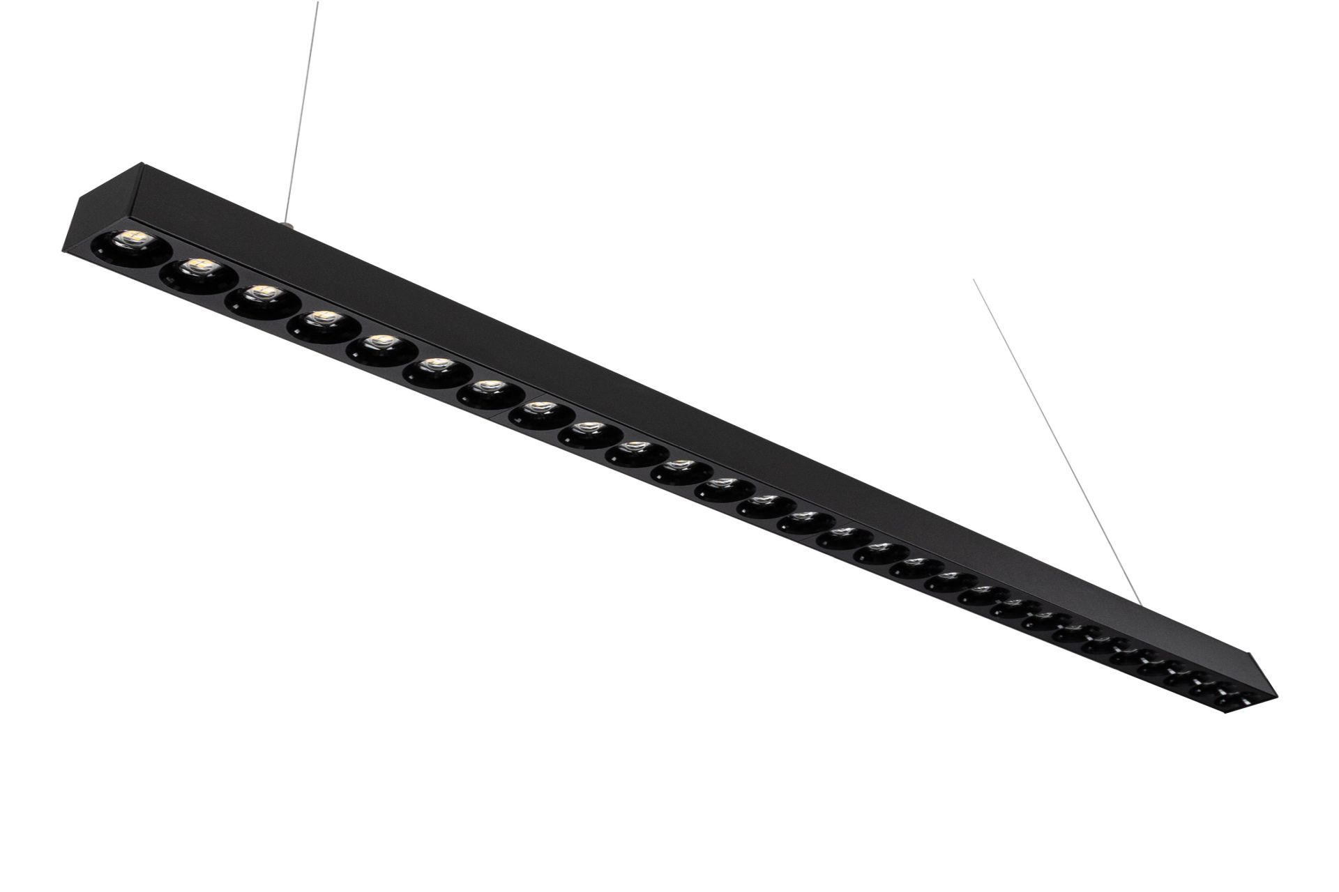 Architectural SLIM indoor LED luminaire IP40 for surface,suspended or wall mounting, equipped with PCB LED. Housing and end caps are made from anodised aluminium, lences 80°standard (50°,35° or asymmetrical on request). Available with different light source / lighting output and color temperature. Application for residential or commercial areas (receptions, working places, offices, villas)